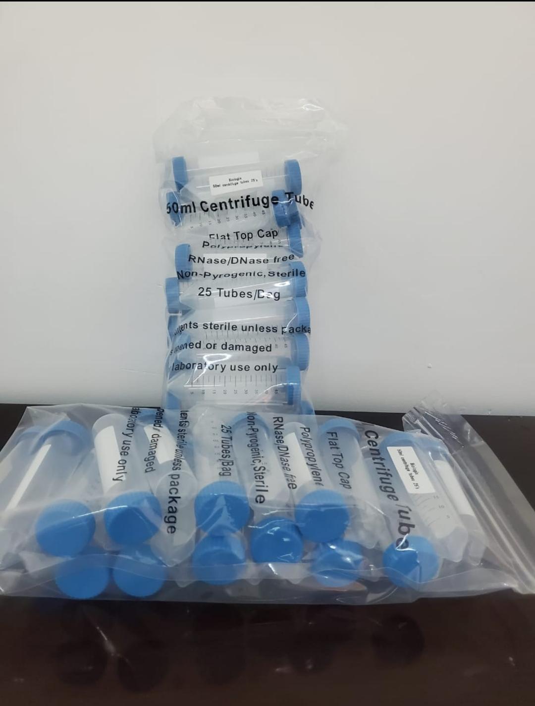 25 x 50ml Sterile Centrifuge Tubes per bag